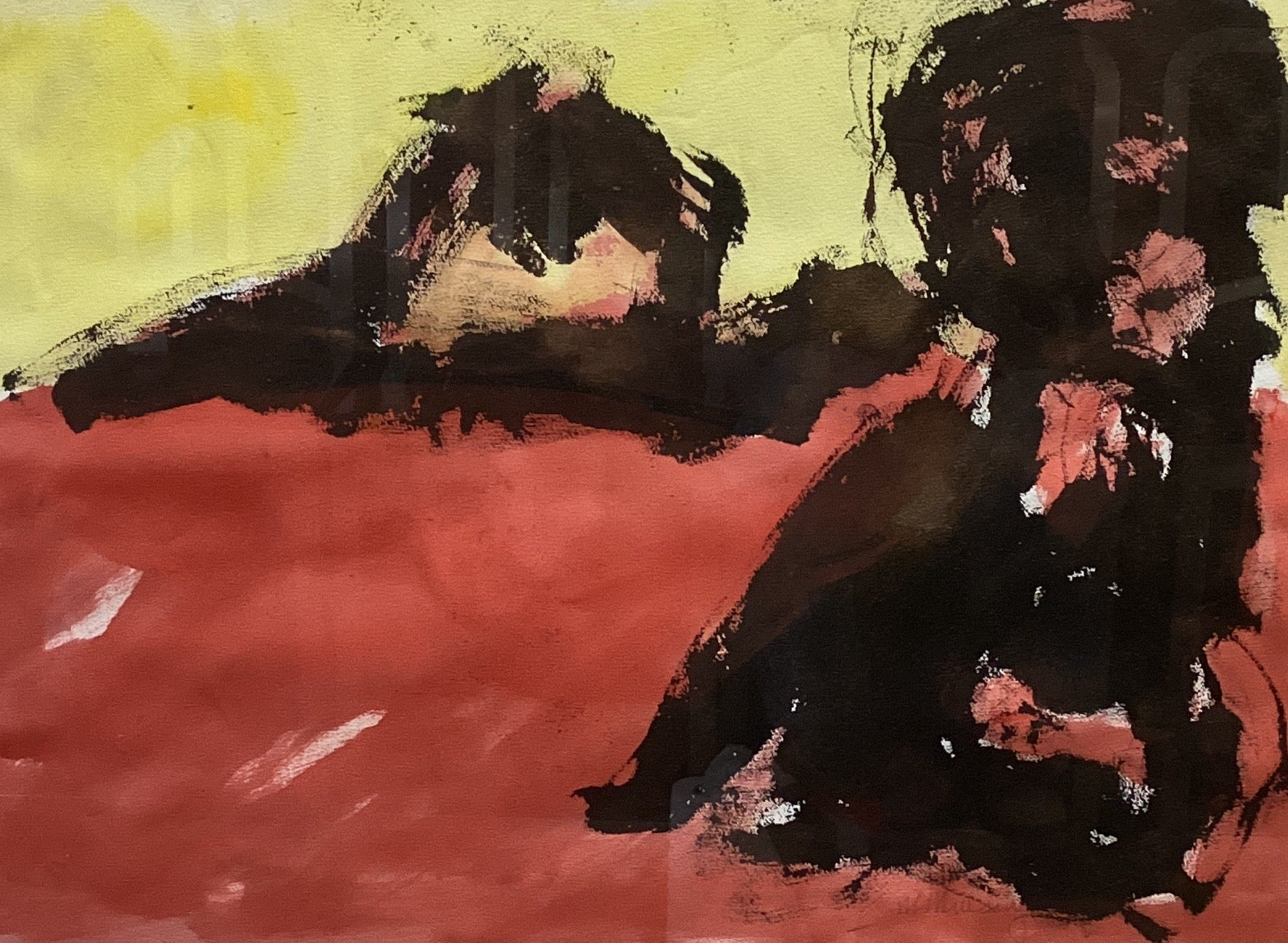 Mick Mulcahy (Irish 1952-) "An Scéal Nua" (the new story). Image size 30x22 IN. Framed size 40x33 IN.