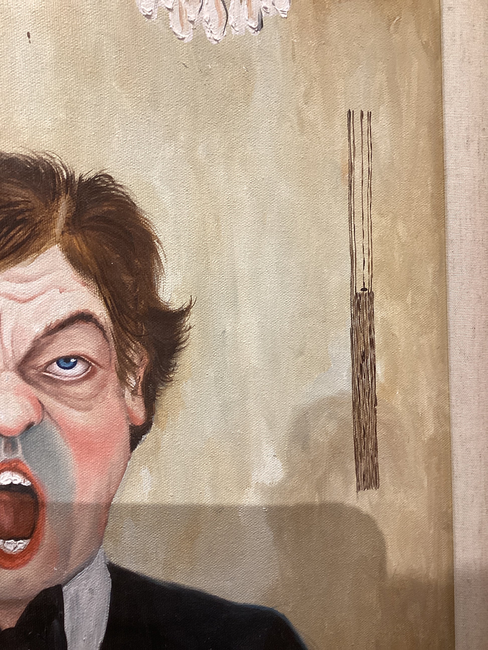 By John Schwatschke (Irish 1943-). One of his highly sought after and collectable cartoons. Framed acrylic on canvas, Monogrammed in field. Signed, titled, and dated en verso. Artist's catalogue number #1100.