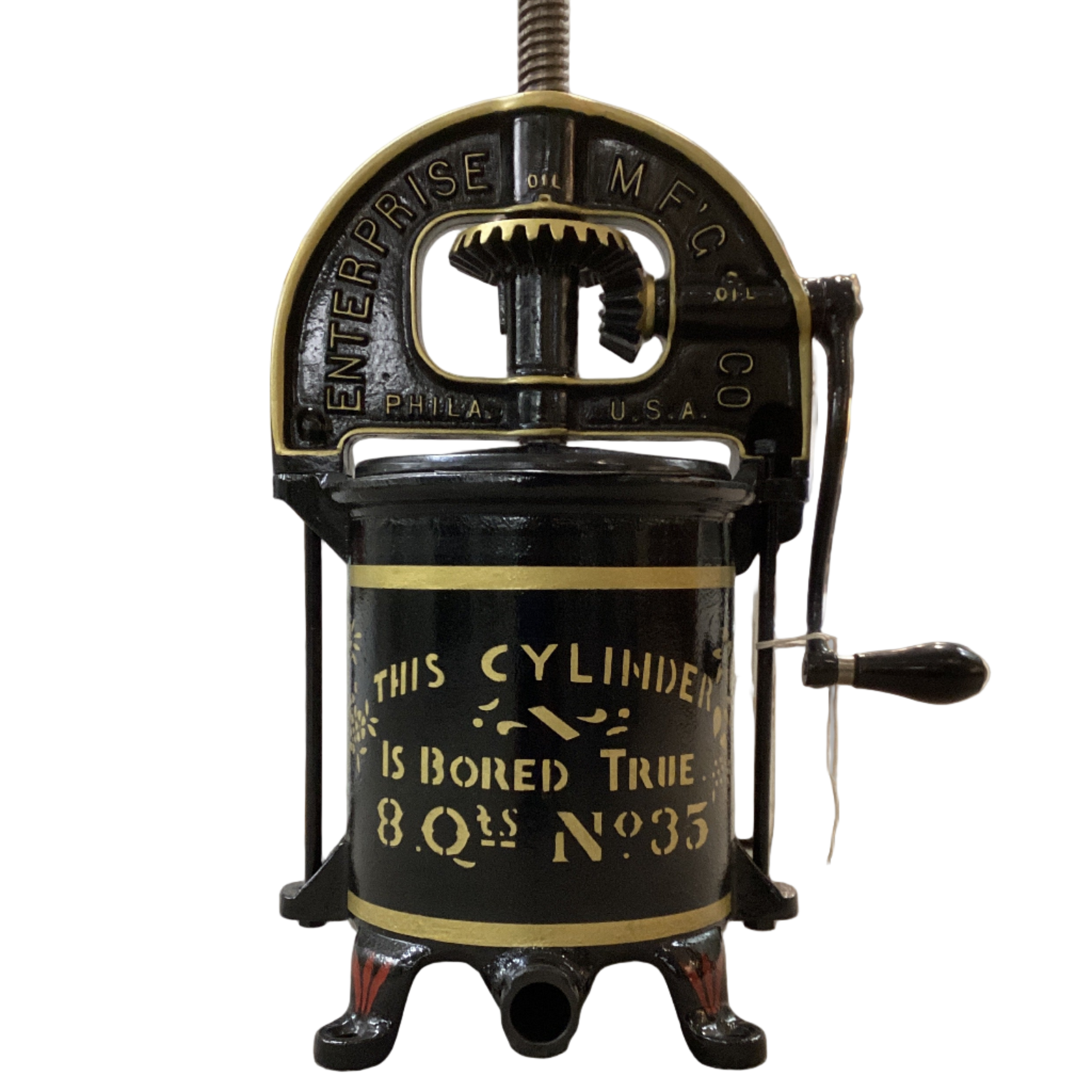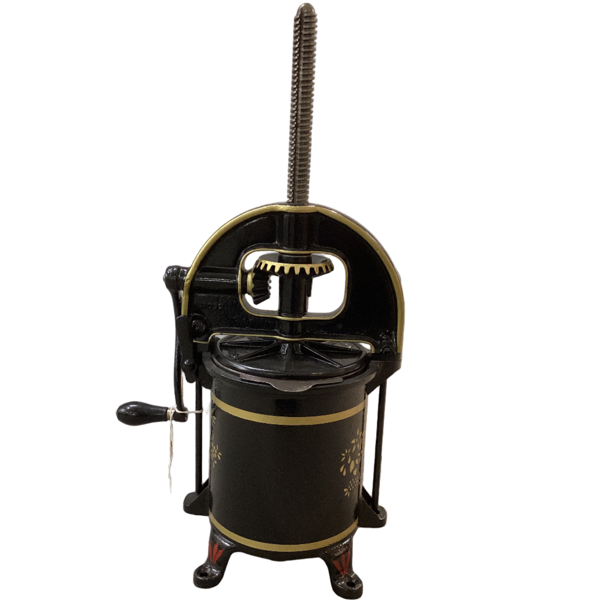 Fully restored, interior is painted with paint certified safe for food contact by USDA. Can be used for pressing fruit / lard or stuffing sausage. Sausage horn nut included but not pictured