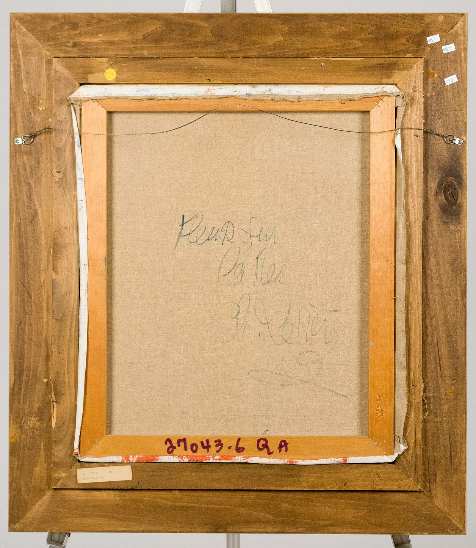 Charles Levier (French / American 1920 - 2003) Oil on canvas floral still life. Titled and signed en versio. Signed Levier LR. Canvas size 20"x24". Framed size 29x33 IN.