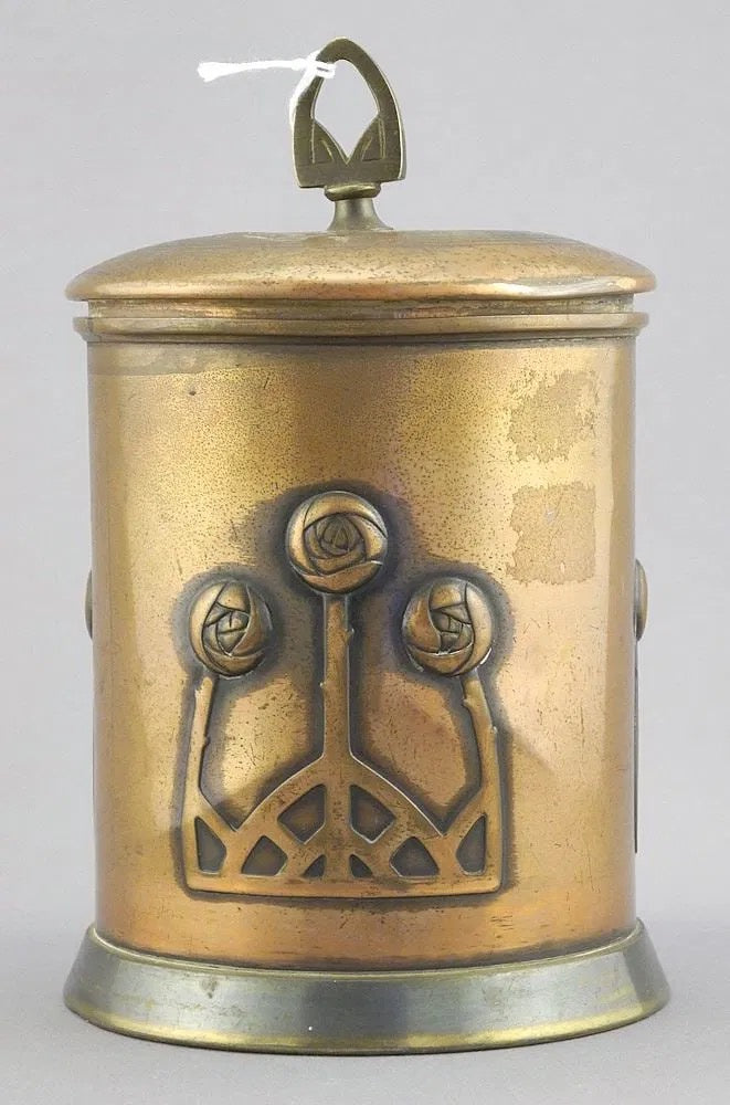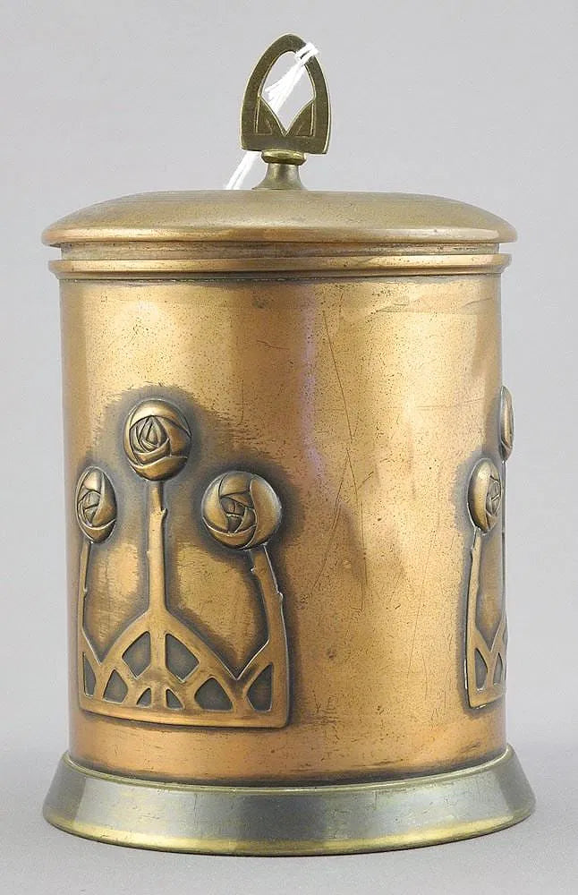 COE "Glasgow Rose" Copper Humidor, 6 5/8" (as found). with insert