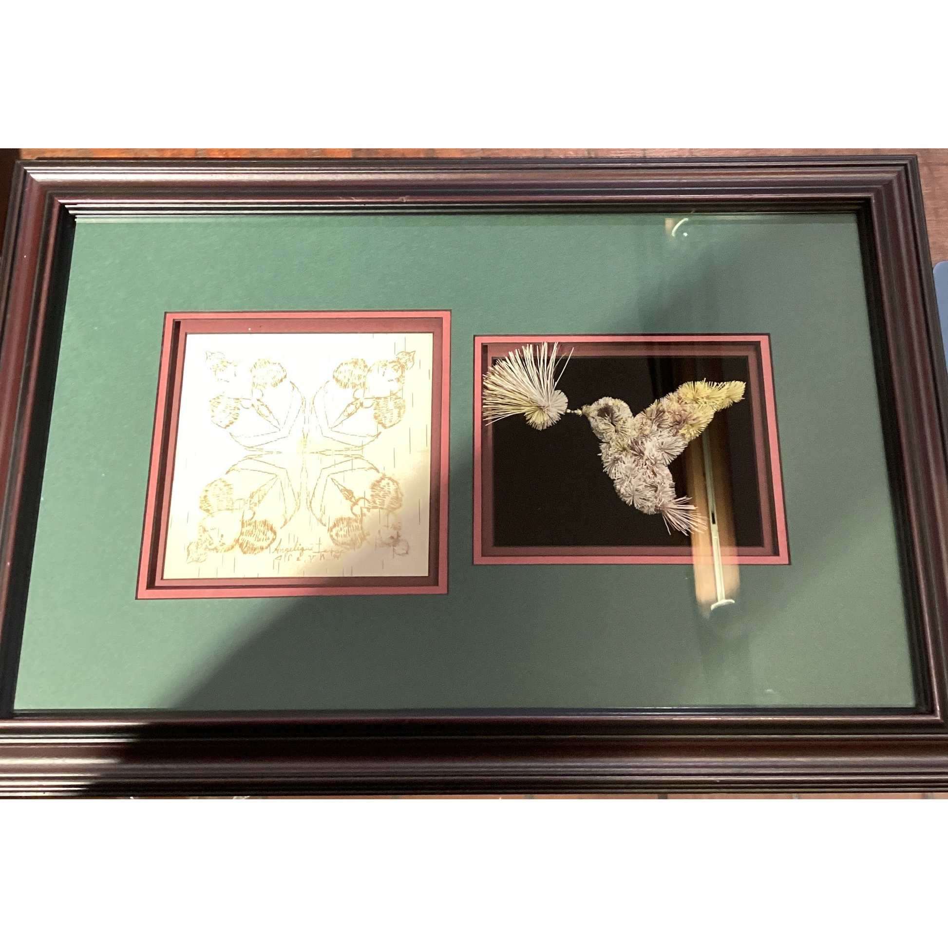 Angelique Levec is a Canadian Anishinabbbe artist. Birch biting is a traditional native art form, learned by the artist in Saskatchewan province. Sculpted Caribou hair art (also known as tufting) is a traditional indigineous art form, originating around the turn of the c20th in northern Canada.