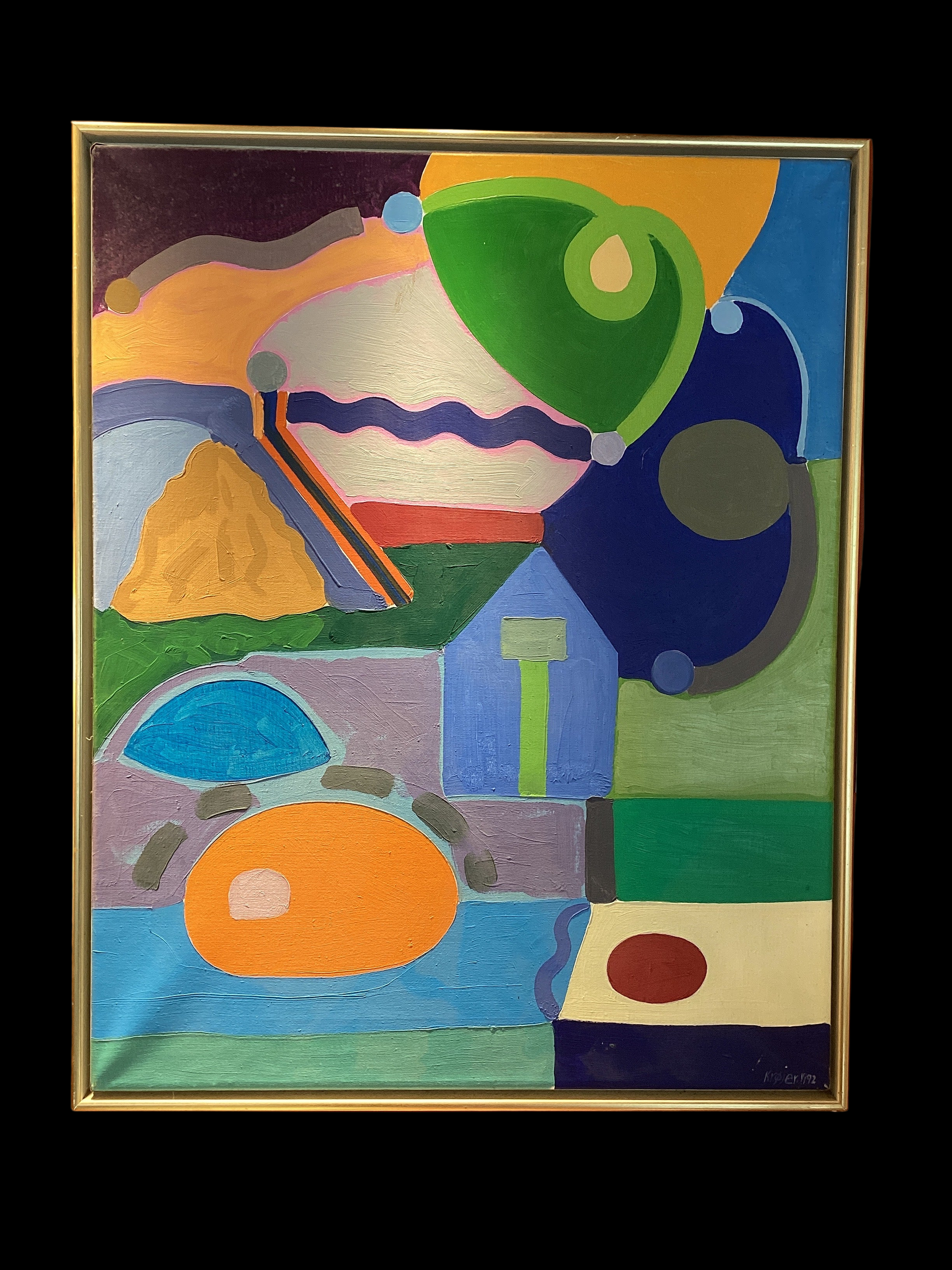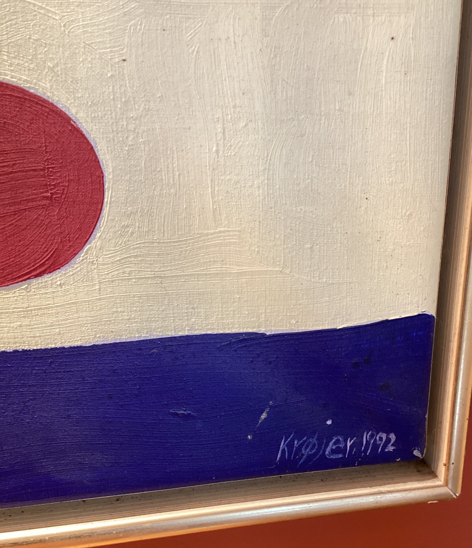 Tom Krøjer (Danish 1934-2015) Oil on canvas in original frame. Would benefit from a light professional cleaning. Image size 23x29 IN. Frame adds ~.5 inch on each side.