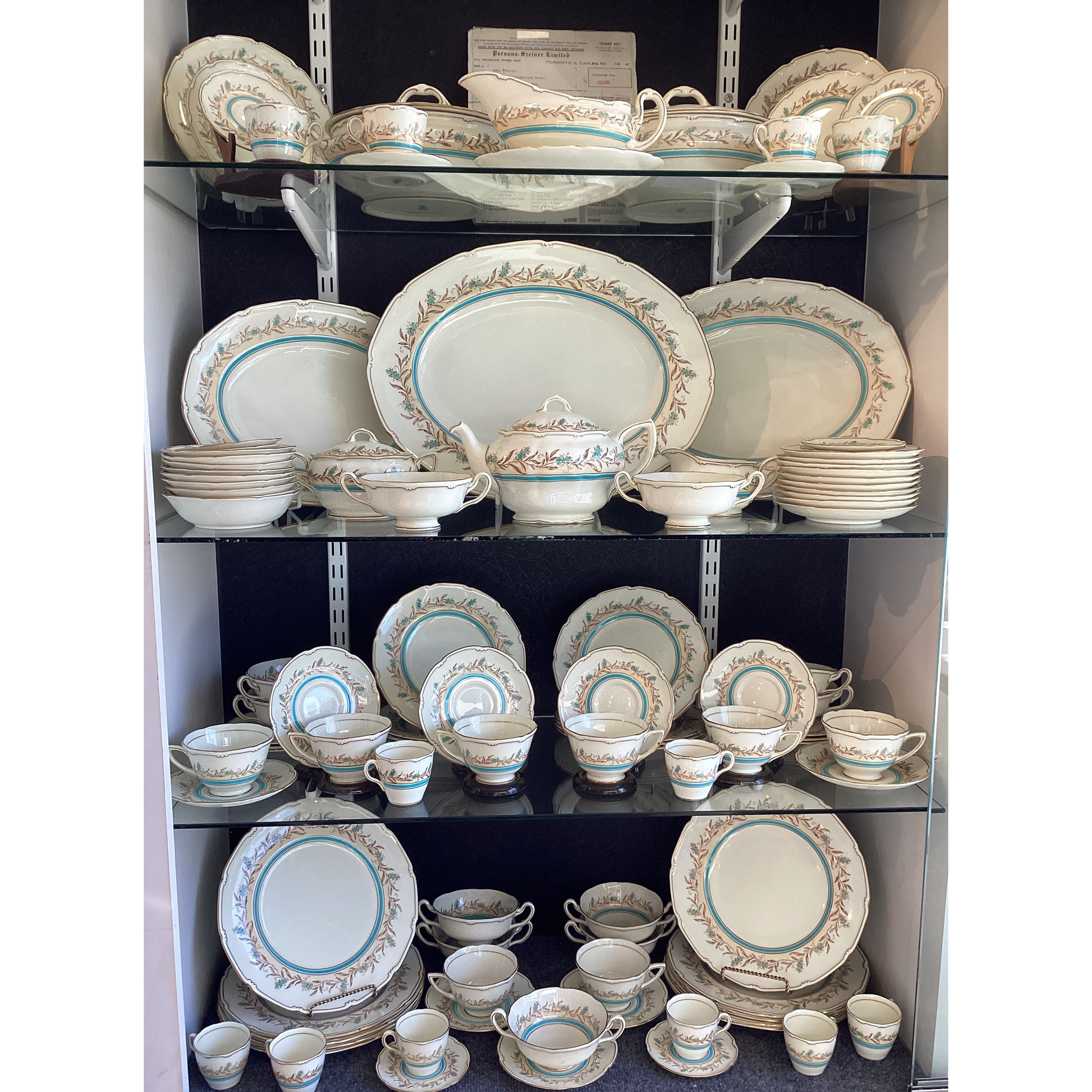 Full dinner service of over 100 pcs. In mint condition, used only used once. With original initial purchase receipt dated 1947. A RARE survivor!