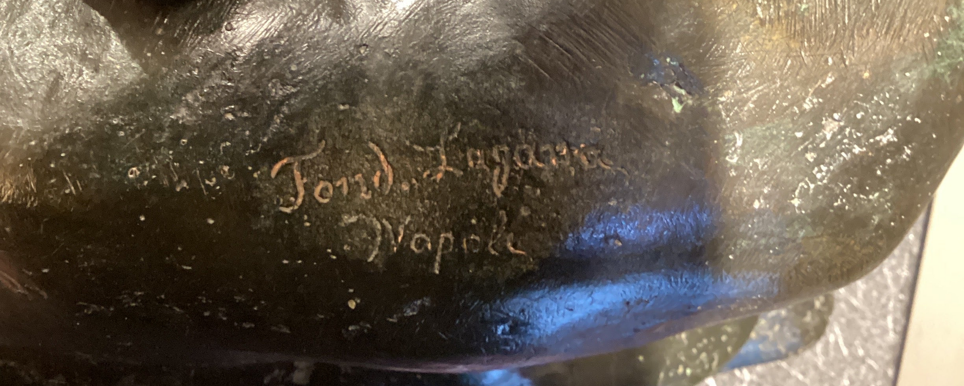 Italian bronze of late 1890 vintage after the celebrated antique discovered at the Villa of the Papyri in Herculaneum. Signed on rear and attributed to Fonderia Laganà, Naples. A wonderful "Grand Tour" souvenir. Height: 20 in, width: 19.3 in, depth: 11.8 in.