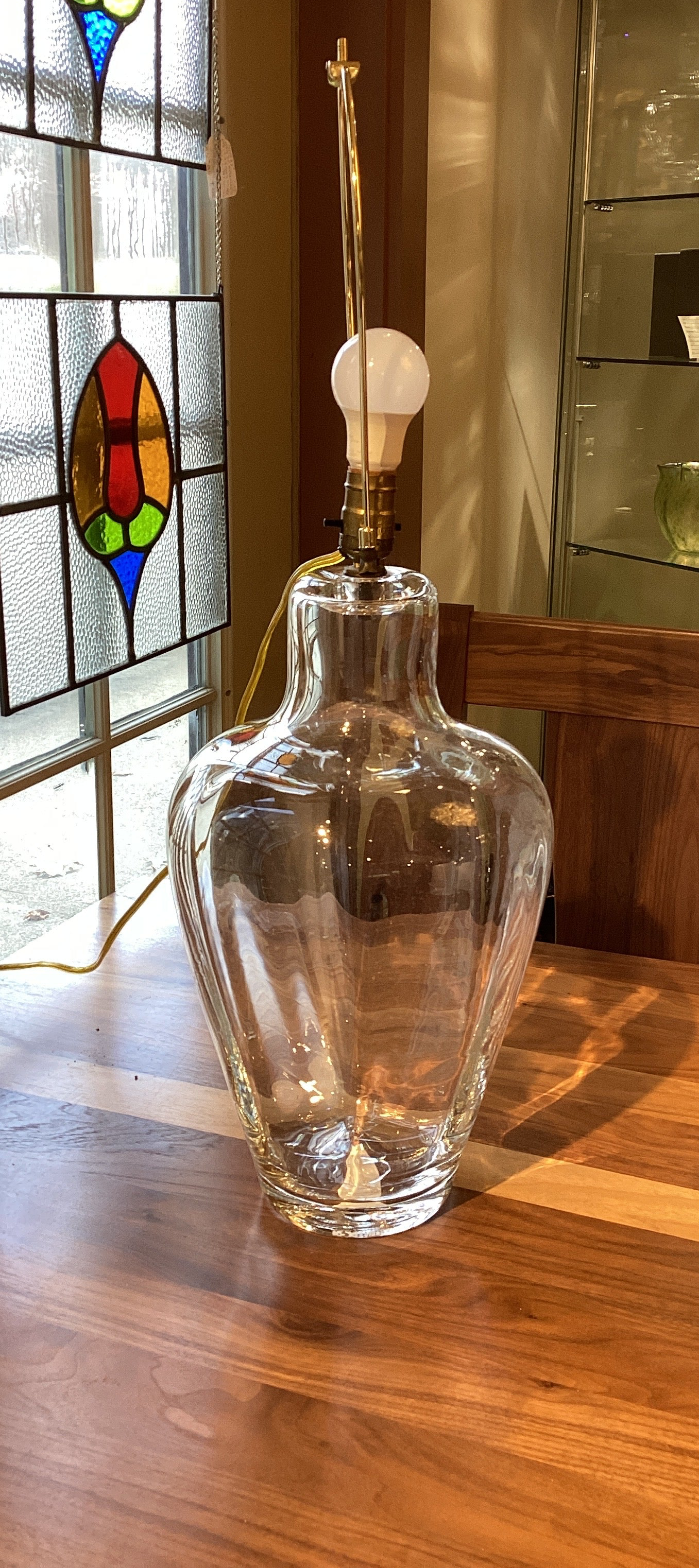Discontinued design, vintage Simon Pearce. Second quality due to swirls in glass (which we think make it even more beautiful!) - shade optional ($80 extra). 30" tall.